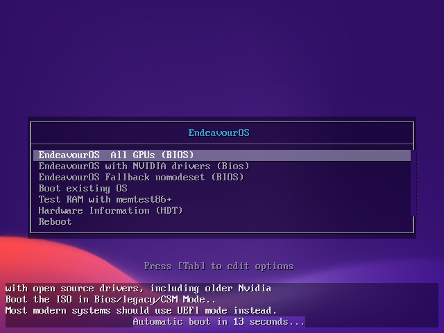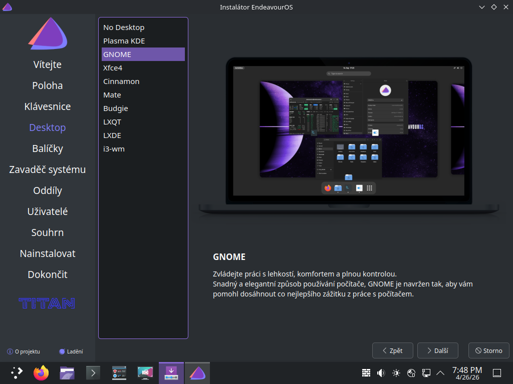 "Poznámka: Nemusíte hledat speciální verzi pro GNOME. EndeavourOS má jedno univerzální