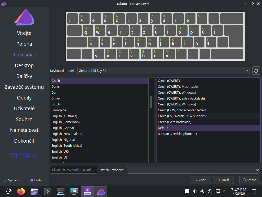 2. Klávesnice: Zvolte české rozložení (Czech).