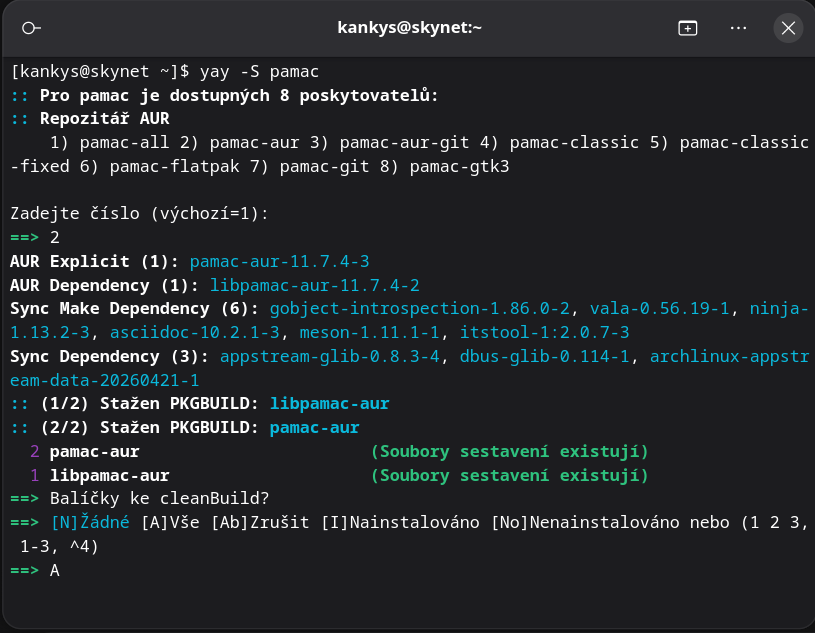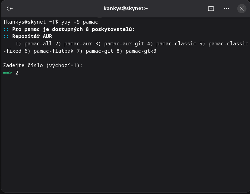 2. Výběr zdrojů: Hned po spuštění příkazu se vás terminál zeptá na výběr konkrétních balíčků (poskytovatelů). Zde uvidíte seznam možností. Pro naši komunitu je ideální zvolit možnost, která zahrnuje podporu AUR, aby se vám software instaloval co nejsnadněji. Stačí zadat číslo odpovídající vaší volbě (obvykle se volí základní verze pamac-aur) a stisknout Enter.