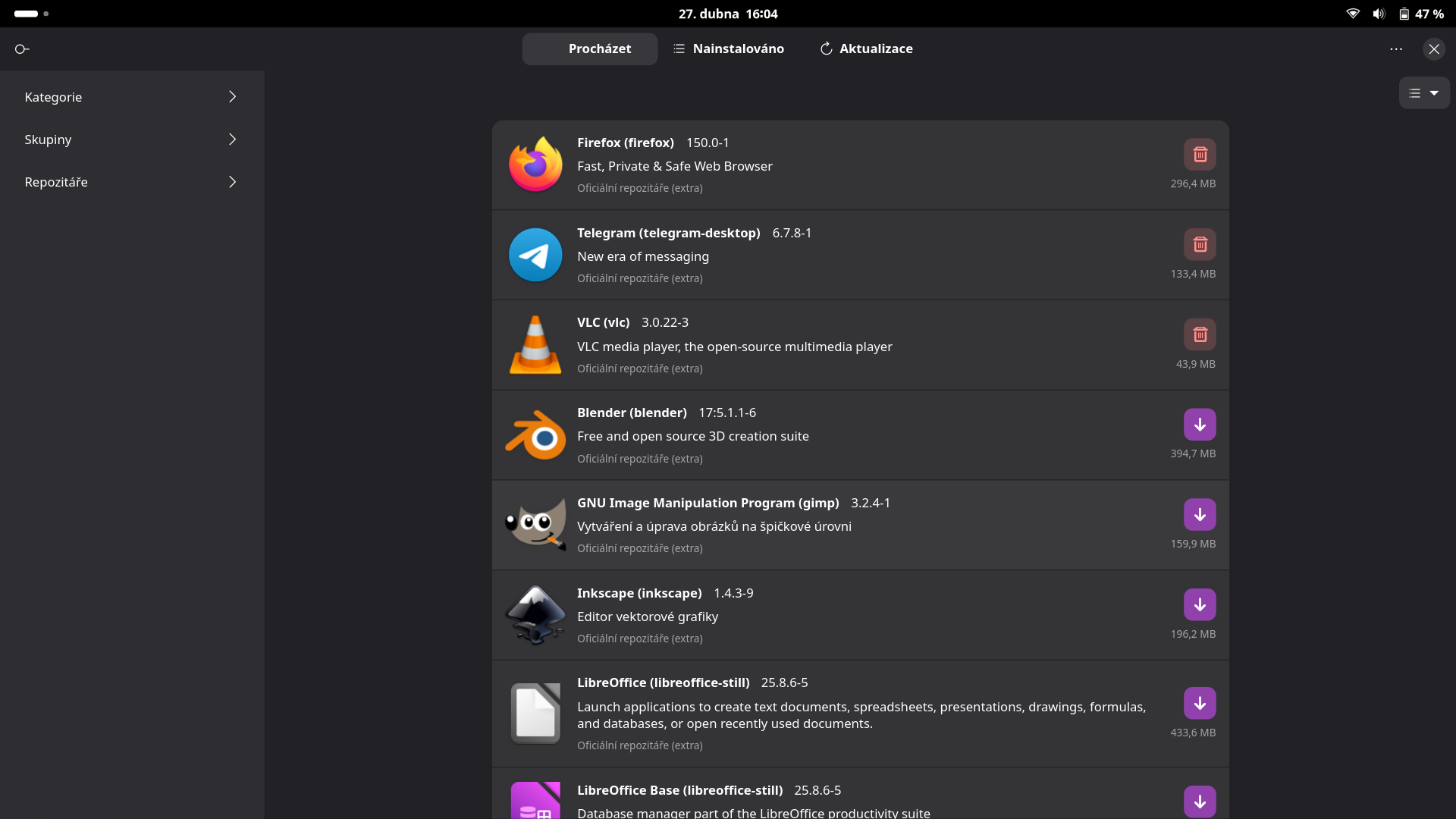 Jak lehce instalovat aplikace pomocí grafického správce Pamac
